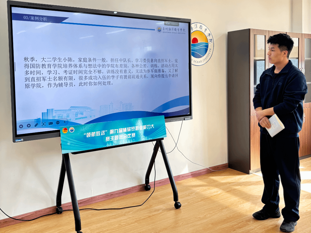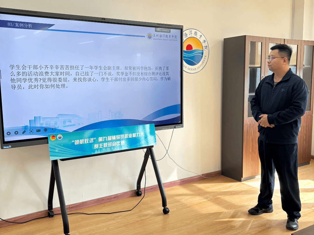 为深入落实泉海院综〔2025〕185 号文件要求,扎实推进首届泉州市民办高职院校辅导员职业能力大赛校区选拔工作,持续深化 “领航致远” 第九届辅导员职业能力大赛育人成效,11 月 26 日上午,国防教育学院在图书馆东侧 605 会议室隆重举办辅导员职业能力大赛初赛。