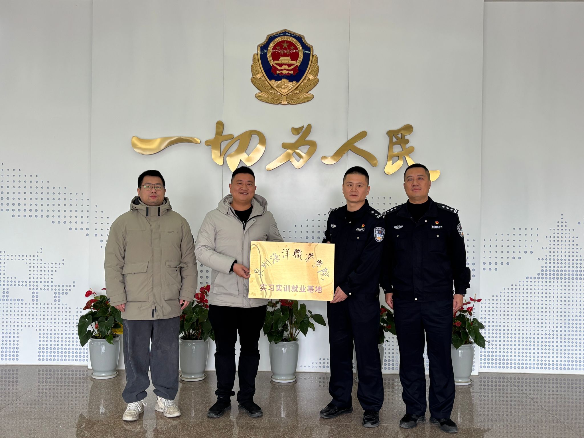 1月20日,学院一行率先抵达永宁派出所,双方举行“校警合作实践基地”挂牌仪式。黄勇所长、曾国同教导员欢迎学院一行,介绍了派出所核心职能及对国防教育专业人才的需求,肯定了往届毕业生在岗表现。学院将以挂牌为契机,优化课程体系、强化实践教学,适配警务实战需求。