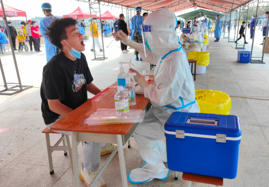 3月20日第四轮核酸检测现场人按要求认真做好防护措施,志愿者们则与医护人员、现场工作者并肩奋战,参与到核酸检测的各个环节中,一丝不苟地做好拍身份证登记、维护秩序、后勤保障等工作,保障核酸检测高效有序进行。