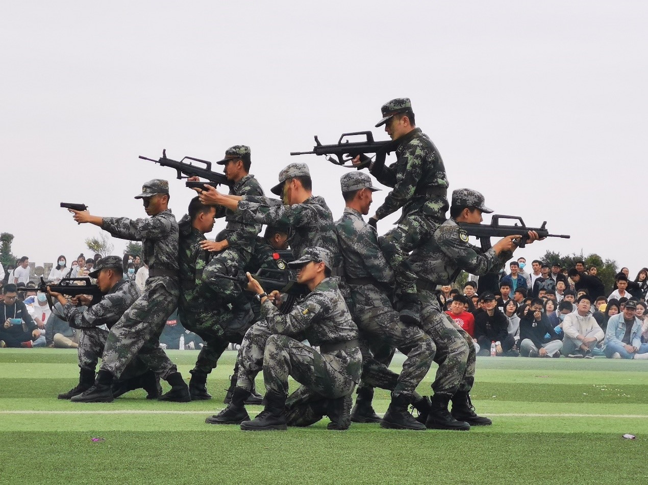 风萧萧兮易水寒,教官登场满声欢。钢磨的意志,铁打的教官,特种战术表演无愧于开幕式中最精彩的节目。