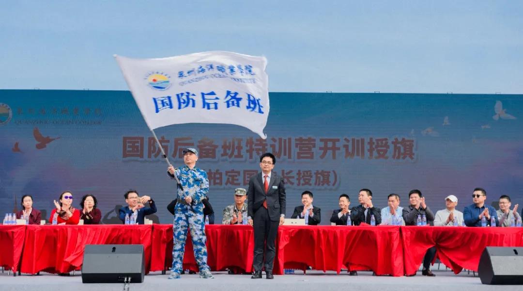2020年10月23日上午,泉州海洋学院隆重举行2020级新生开学典礼。大会上,柏定国校长为我校首届“国防后备班”开训授旗,这标志着我校“国防后备班”试点工作迈出实质性的一步。