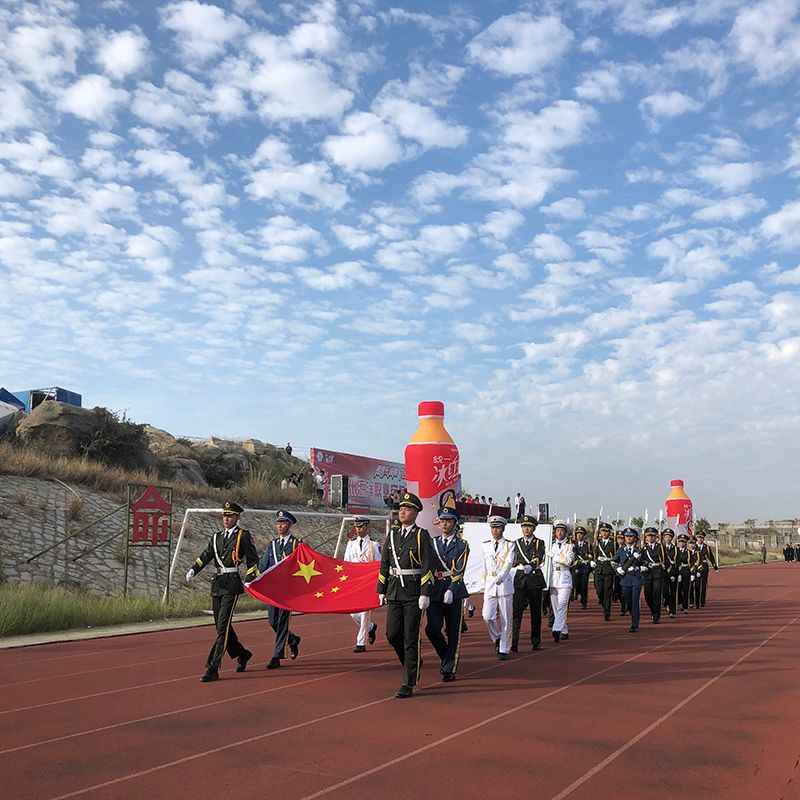 阳光明媚,微风阵阵,伴随着铿锵有力的《运动员进行曲》,国旗仪仗队,高举国旗、校旗和会徽,迈着坚定的步伐以最自信的姿态走过主席台,在他们炯炯有神的眼神里蕴藏的是对祖国的热爱,对泉海的美好未来祝福。紧随其后的是各二级学院代表方队,他们以昂扬的姿态迈着整齐铿锵有力的步伐依次进场。李明灿副书记宣布泉州海洋职业学院第六届运动会开幕式开始。全场肃静,国歌奏起!