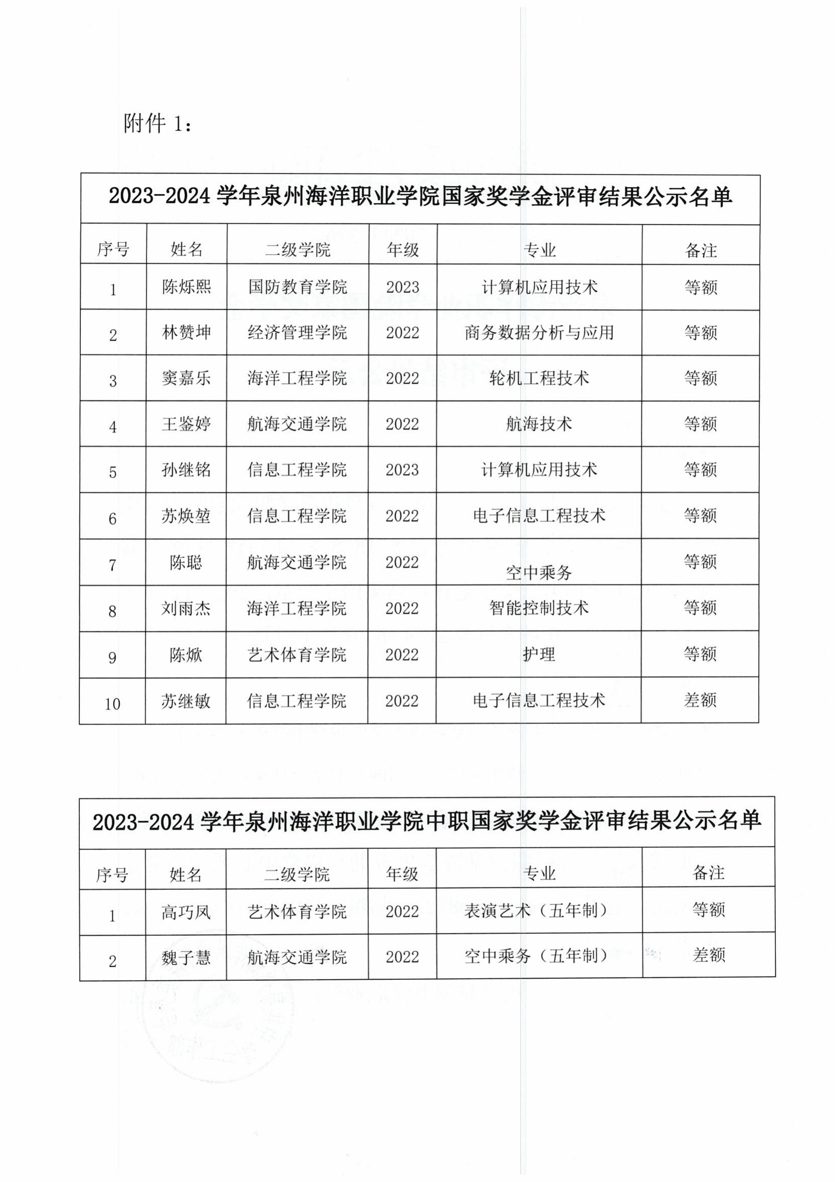 上一篇:泉州海洋职业学院国家励志奖学金评审结果公示