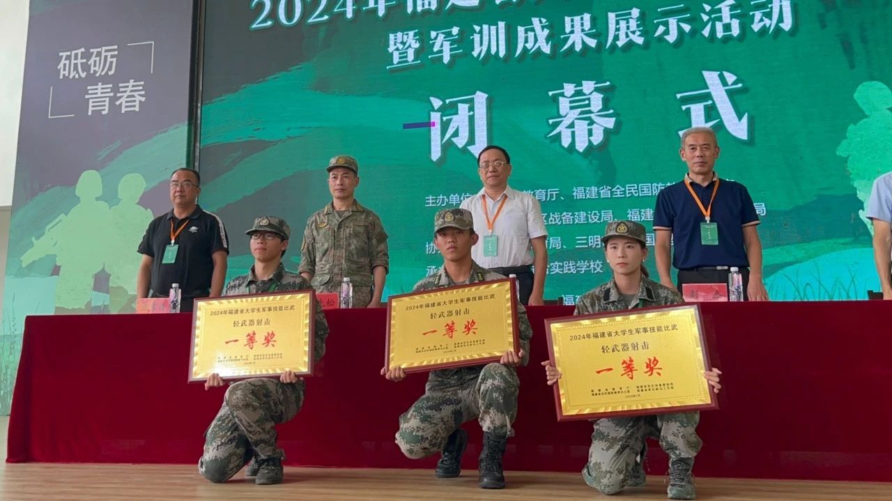 7月12日至14日,由福建省教育厅、福建省全民国防教育办公室、福建省军区战备建设局、福建省军区政治工作局联合举办2024年福建省大学生军事技能比武活动在福建省三明市综合实践学校举行。我校学子斩获单项一等奖2项、二等奖2项,并荣获团体二等奖,成为福建省参赛高职院校中唯一获此殊荣的学校。