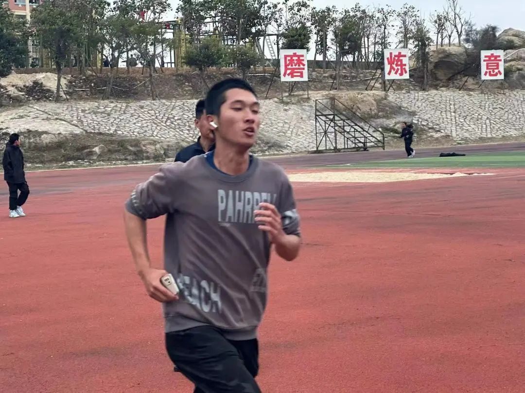 首先打响持久战,“三公里越野跑”,他们在跑道上尽力挥洒着汗水,不断的向前奔跑,以顽强的意志和坚定的信念不断坚持着,冲向终点。