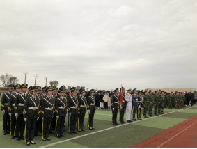 2020年12月21日早上7点,我校国旗护卫队换届交接仪式在田径场隆重举行。仪式由国防教育中心副主任贺充老师主持。