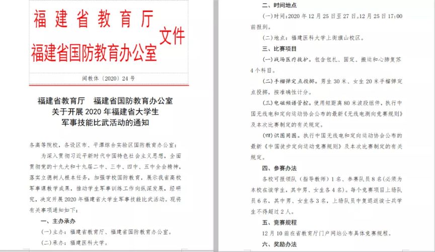 “青年兴则国家兴,青年强则国家强”。一年一度的福建省大学生军事技能大比武来了,为深入贯彻习近平新时代中国特色社会主义思想,全面贯彻党的十九大和十九届二中、三中、四中、五中全会精神,落实立德树人根本任务,加强我校国防教育,展示我校军事课教学成果,推动我校准军事化管理。