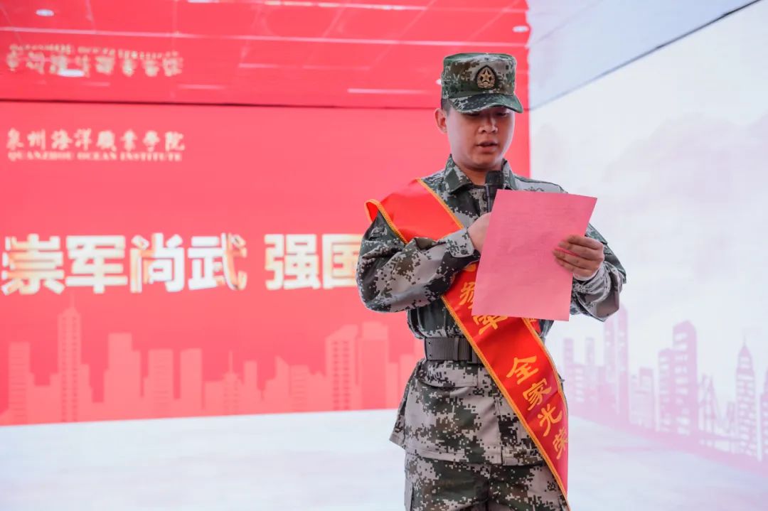 庄伟廉校长代表学校董事会、全体老师向积极应征入伍的10名准军人表示热烈的祝贺,对新兵家长们致以崇高敬意和衷心感谢。同时,庄校长也提了三个希望:一是希望同学们一定要站在事关国家安全、民族兴衰,事关“打得赢”“不变质”的高度,来认识和对待服兵役工作,同时,要珍惜荣誉,为我们泉州海洋职业学院争光添彩,让父母、老师、亲朋好友为你们骄傲、自豪;二是入伍以后,一定要以国家为重,以人民为重,刻苦训练,坚决服从命令,在部队这个“大学校”“大熔炉”里好好锤炼,不断提高思想上、工作上、组织上的素质,不计个人得失,坚决把自己打造成为一名钢铁战士;三是珍惜在部队的时光,通过几年的锤炼,成为一个有文化、有纪律、有特长、有技术的人,将部队优秀文化传递给身边的每一个人!