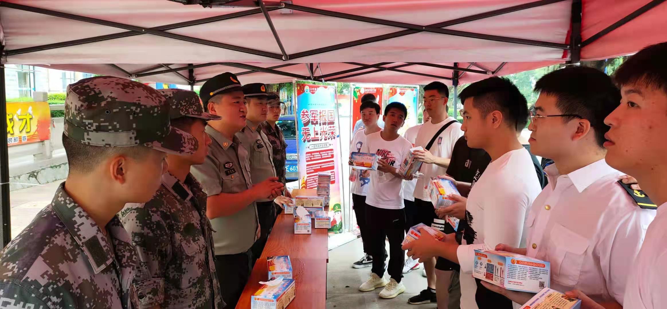 现场通过悬挂宣传标语、制作政策展板、现场答疑解惑等形式对征兵的基本条件、体检标准及大学生参军优待政策进行了多渠道多形式的宣贯,吸引了众毕业学子驻足询问。武装部苏良城部长也在现场为大家详细讲解了关于直招士官的相关政策。