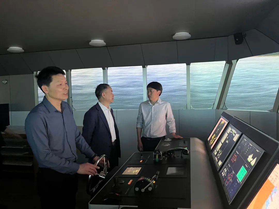 调研团队实地考察了江苏海事职业技术学院的实训条件、学员宿舍及训练情况。实训中心设备先进,如航海技能训练中心的航海模拟器可模拟复杂海况,船舶智能化机舱达到无限航区 AUTO-0机舱建设标准,承担学生实践教学与部队培训任务。