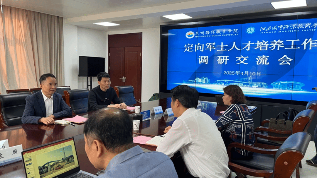 为积极落实海军 “基地化征召培养士兵” 人才合作协议,进一步提升我校国防教育学院教学管理水平,2025 年 4 月 9 日至 11 日,我校副校长钱学东、国防教育学院院长邵院长、教官蔡荣伟一行,奔赴江苏海事职业技术学院,就军士人才培养情况展开深入调研。