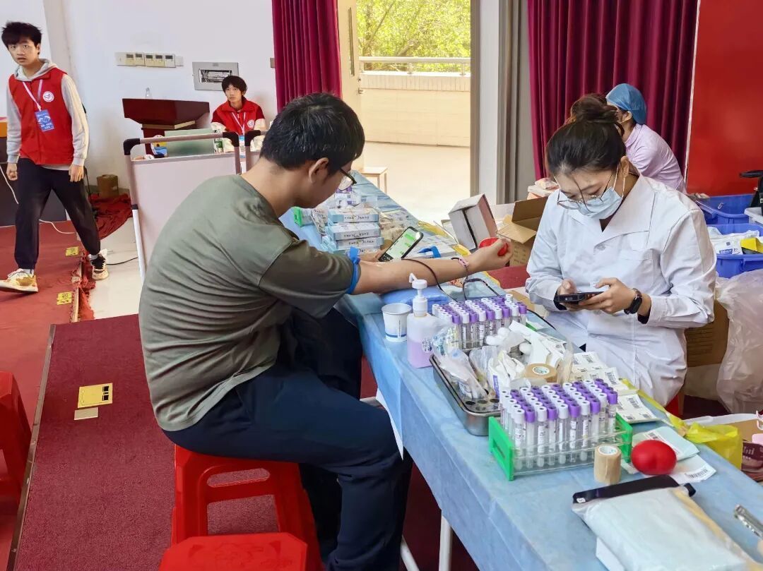 活动现场爱心涌动、暖意融融。在志愿者的专业引导下,同学们有条不紊地依次完成信息登记、健康体检、血液初筛与采血等流程。现场氛围既温馨暖心又秩序井然,一袋袋鲜红的热血,不仅承载着守护生命的希望,更凝聚着国防学子服务社会、奉献青春的真挚情怀与使命担当。