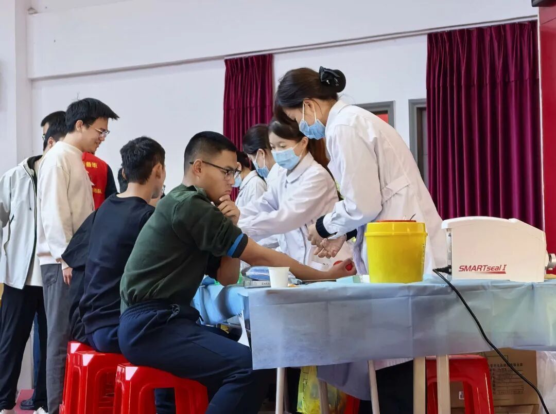 12月5日,泉州海洋职业学院国防教育学院在2号教学楼 2204 教室有序组织开展无偿献血公益活动。活动发起后,国防学子积极响应号召,纷纷挽起衣袖、伸出手臂,以奉献热血的切实行动传递人间爱心与社会温情,用汩汩热血诠释新时代青年的责任与担当,生动展现了国防学子胸怀大爱、服务社会的优良风貌。