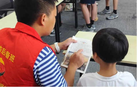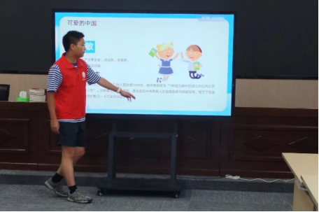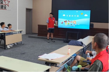 随后,志愿者精心筛选并播放了符合幼儿认知水平的漫画形式爱国教育视频。该视频以轻松趣味的动画叙事为载体,内容涵盖历史典故、英雄事迹及日常生活中的爱国行为,使孩子们在愉悦的观看氛围中,潜移默化地深化了对爱国精神的理解与认知。视频观赏环节结束后,志愿者进一步带领孩子们集体朗读方志敏烈士的经典篇章与《少年中国说》节选,引导孩子们在朗朗书声中感悟革命先辈对祖国的赤诚与深情,深刻体会从 “中国梦” 的宏伟构想迈向 “中国强” 的伟大奋斗历程。