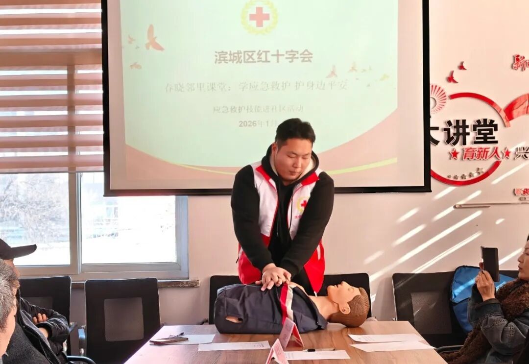 为积极响应寒假三下乡活动,国防教育学院轮机工程技术2409班宋昕远同学积极参与滨城区红十字会联合北镇街道春晓社区开展的 “春晓邻里课堂:学应急救护 护身边平安” 公益救护培训活动。在系统学习与实操演练中,他熟练掌握应急救护与自救互救技能,以实际行动践行新时代青年的社会责任,在服务群众、守护平安的实践中增长才干、淬炼担当,让青春在奉献中绽放光彩。