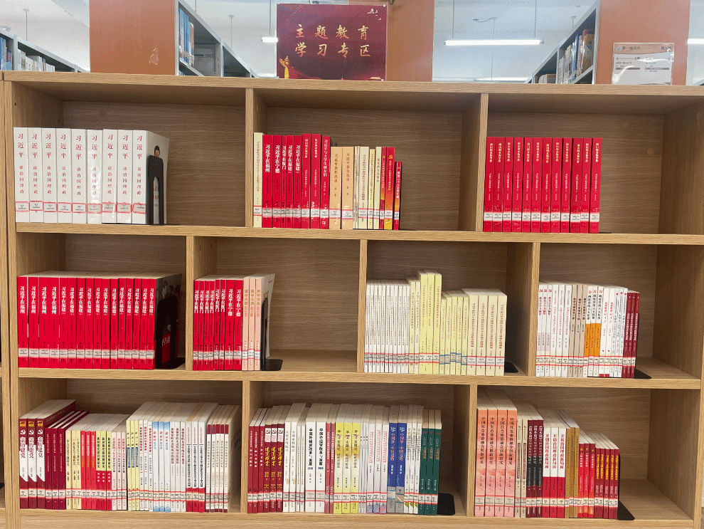 我校图书馆在主题教育学习专区陈列了《党的二十大文件汇编》《习近平新时代中国特色社会主义思想专题摘编》《习近平著作选读》(第一卷、第二卷)等十余种主题教育重要学习书目。此外,馆内党建图书借阅区也陈列了习近平总书记论述摘编、系列重要讲话、思想研究等多种学习资料,供广大师生前往阅览。