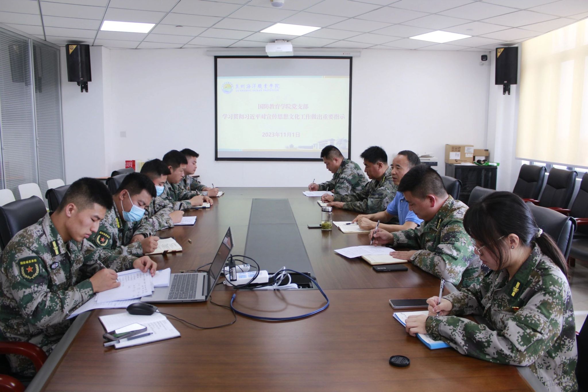 11月1日,国防教育学院党支部在图书馆西侧813会议室召开学习贯彻“习近平对宣传思想文化工作作出重要指示精神”专题学习会。副校长钱学东出席此次会议,国防教育学院全体职工党员参加。会议由国防教育学院党支部书记苏良城主持。