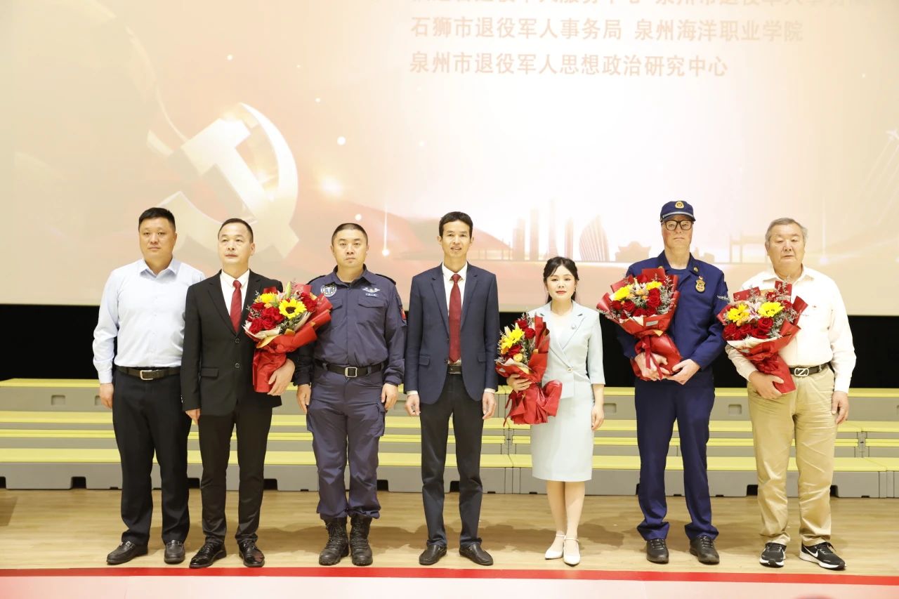 4月19日,由福建省退役军人事务厅主办,福建省退役军人服务中心、泉州市退役军人事务局、石狮市退役军人事务局、泉州海洋职业学院、泉州市退役军人思想政治研究中心承办的“学习贯彻二十大精神,激励老兵永远跟党走”巡回宣讲活动,在泉州市退役军人思想政治研究中心(泉州海洋职业学院)举行。省退役军人厅思想政治和权益维护处处长陈峥嵘,市退役军人局副局长刘洪,泉州各县(市、区)退役军人事务部门领导及思政工作负责人代表,现役军人军属代表,退役军人代表,石狮市拥军企业代表及相关共建单位代表,泉州海洋职业学院师生代表等近400人出席活动。