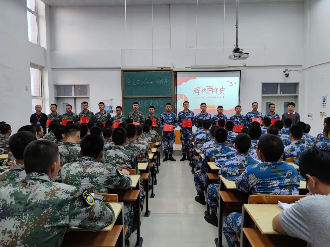 我院长期致力于培养又红又专的国防后备班学生,在其军事技能与思想方面重点加强教育,极力为祖国强军输送高素质、硬技能的青春力量。正值我党建党百年之际,结合红色主题,通过班会活动进行理论宣讲,认真学习习近平总书记在党史学习教育动员大会上的重要讲话精神,重温党的光辉历史,回顾了中国共产党风雨兼程、不忘初心、砥砺奋进的百年征程,回顾了打赢疫情防控攻坚战的“众志成城,共克时艰”。引导学生学史明理、学史增信、学史崇德、学史力行,坚定理想信念,厚植家国情怀,深刻感悟了中国共产党始终不渝为人民的初心宗旨。