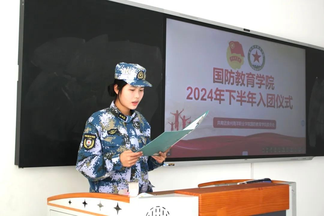 接下来,国防教育学院团委书记苏韦琪向新发展团员介绍了举行入团仪式的重要意义,并宣读了2024年下半年新发展团员名单。