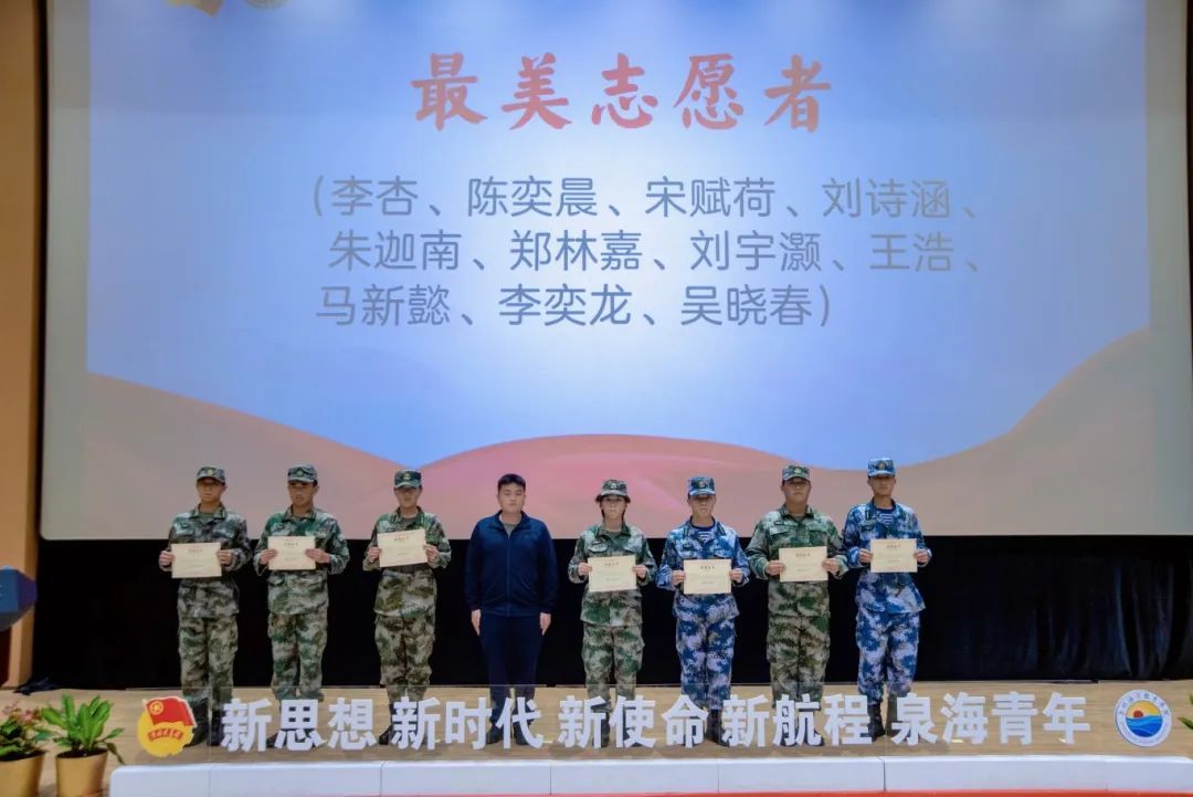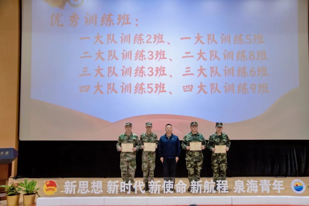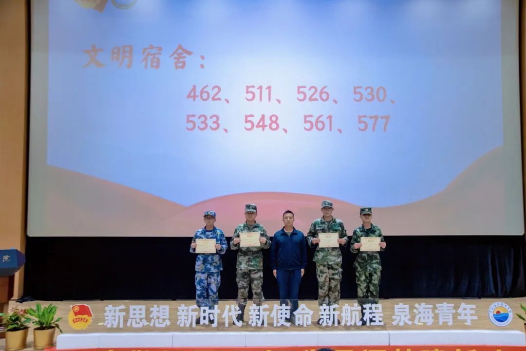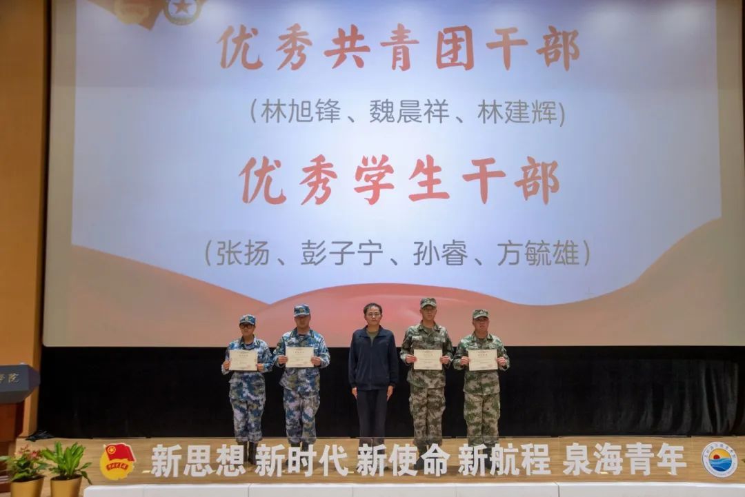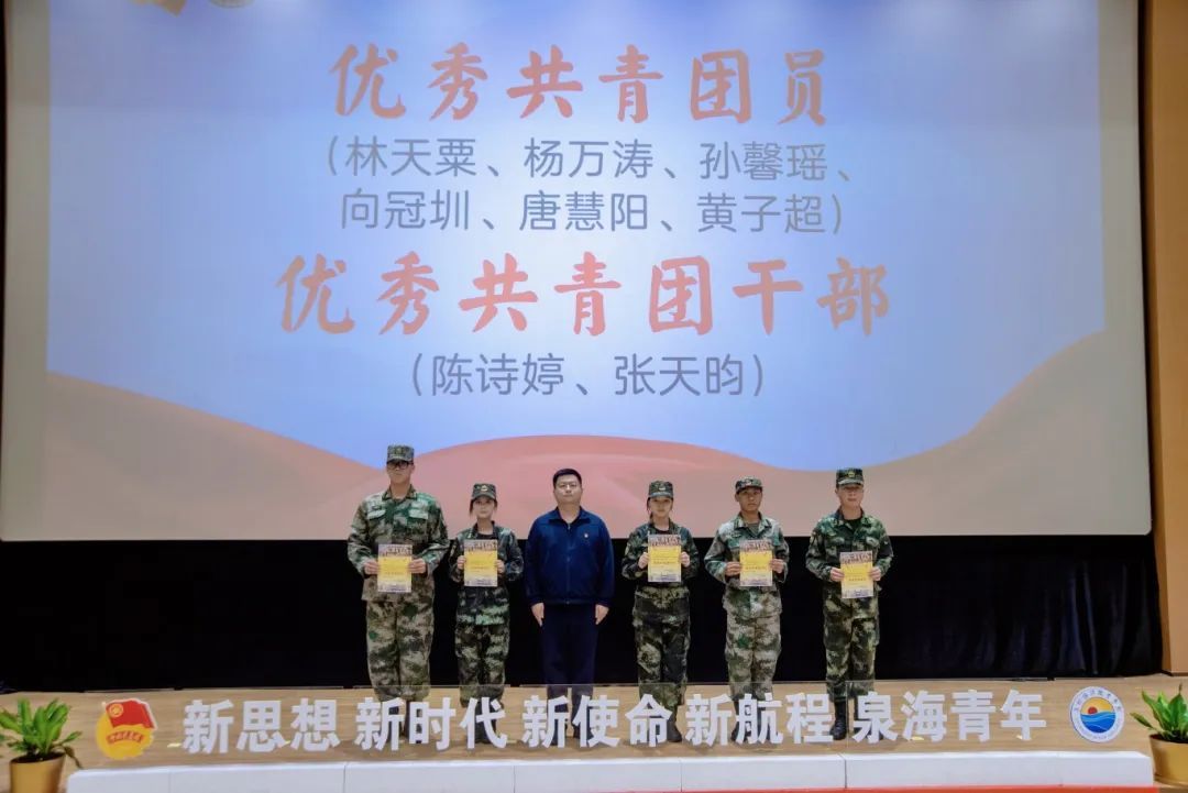 为学习贯彻习近平总书记关于青年工作的重要思想,弘扬五四精神,激励新时代青年学子勇担使命,6月10日,国防教育学院师生及优秀青年代表齐聚图书馆学术报告厅,隆重举行泉州海洋职业学院国防教育学院五四表彰大会。国防教育学院院长邵院长、党支部书记苏良城、党支部副书记贺充、军事教研室主任刘世彬、院团委书记苏韦琪、总教官蔡荣伟出席此次会议,国防教育学院全体师生参会。