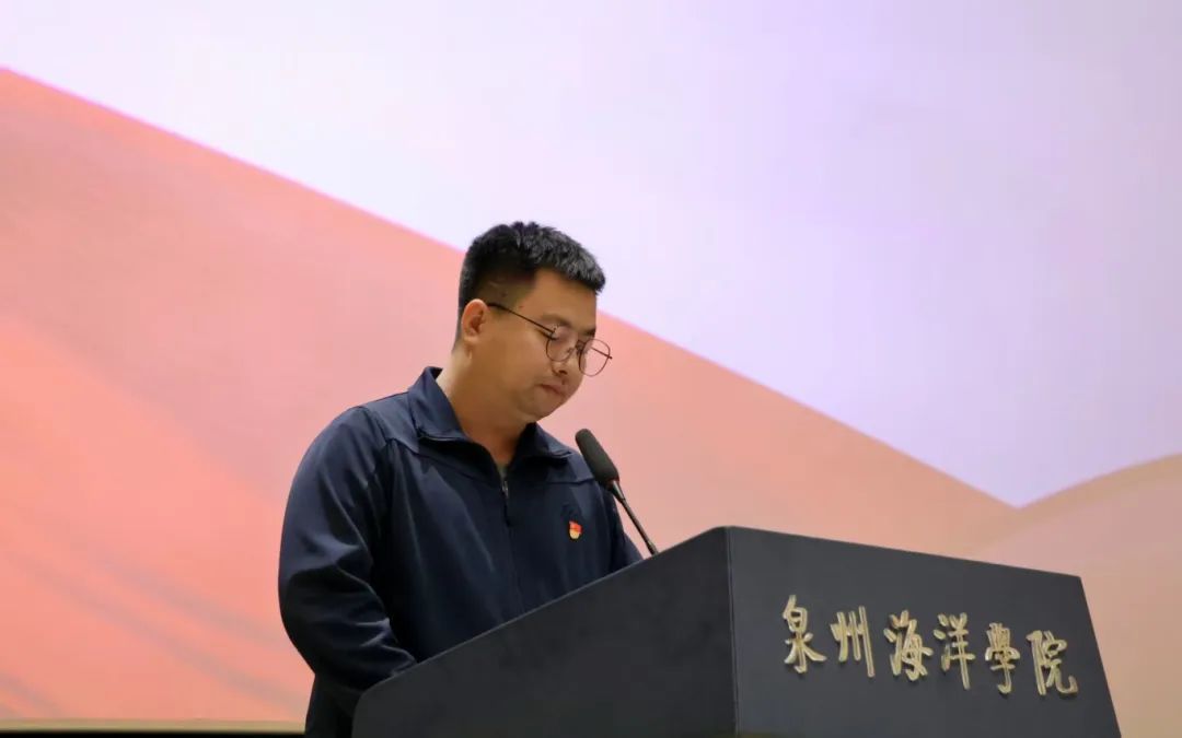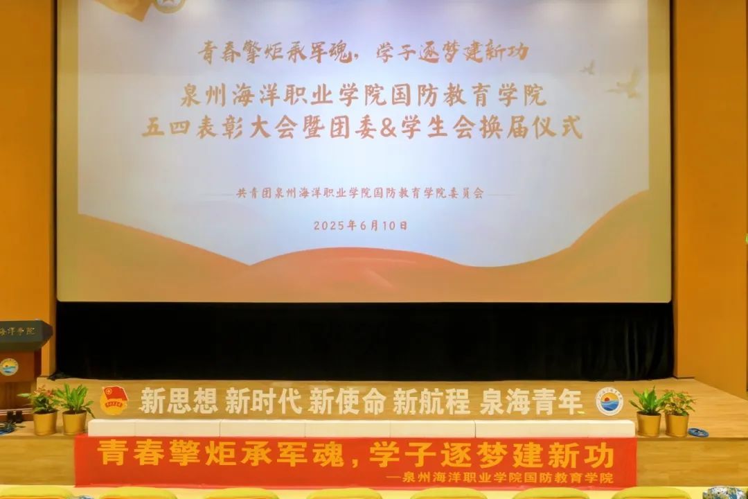 2025年6月10日,泉州海洋职业学院国防教育学院迎来了意义非凡的换届时刻。国防教育学院邵院长、党支部书记苏良城、副书记贺充、军事教研室主任刘世彬、院团委书记苏韦琪、总教官蔡荣伟出席此次仪式,国防教育学院全体师生参会。本次换届仪式由党支部副书记贺充主持。