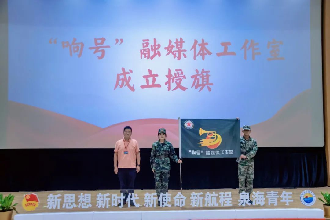 国防教育学院党支部书记苏良城为“响号”融媒体工作室成立授旗。“响号”,寓意着我们将以嘹亮的号角之声,传递国防精神、讲好青春故事;更象征着工作室将以创新为笔、以融媒为墨,在新时代的浪潮中,奏响国防教育与青年成长的最强音。鲜红的旗帜迎风展开,标志着响号融媒体工作室正式踏上征程。这面旗帜,承载着学校对新媒体发展的期望,也激励着工作室的成员们用创新的思维、专业的技能,打造出更具影响力的媒体平台,更好的将国防教育学院的“军元素”展现出来。