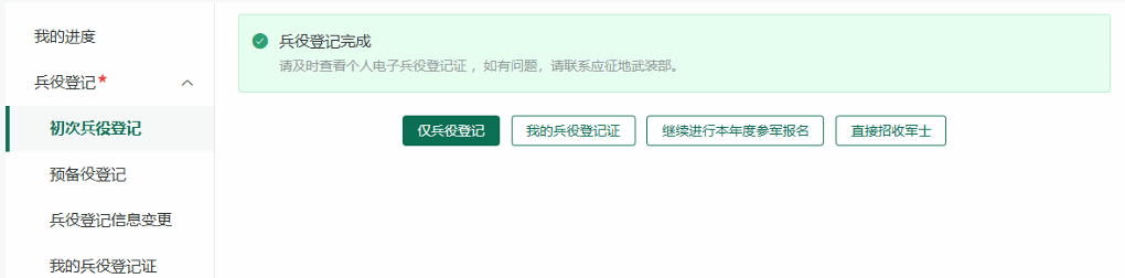 登录系统以后,点击右侧的“ 开始兵役登记 ”进行兵役登记啦!