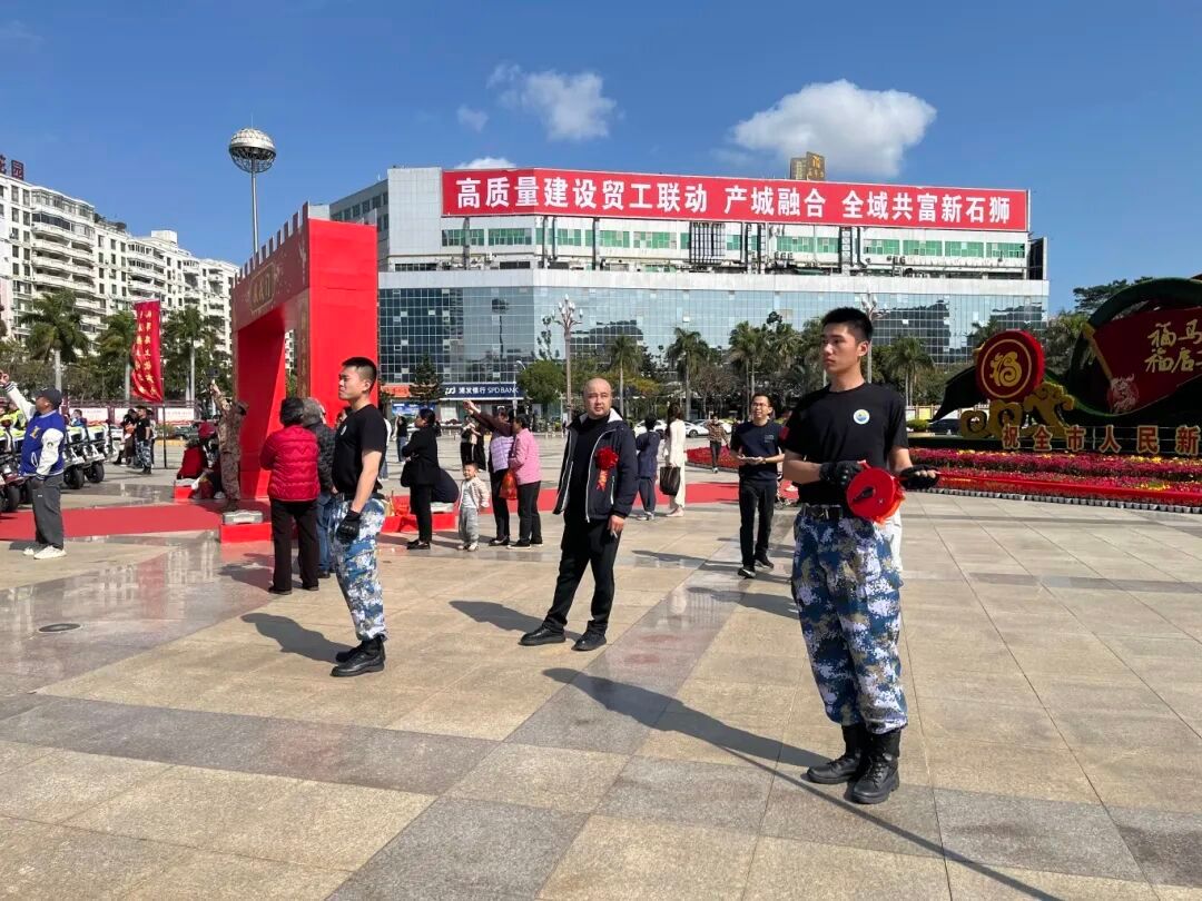 上午的表演结束后,17名学生来不及休息,马不停蹄赶赴石狮市,参加下午举行的石狮市2026年上半年新兵欢送大会拳术表演。面对连续表演的高强度考验,同学们毫无怨言、精神饱满,再次以精湛的技艺、饱满的热情完成了表演,用坚韧的毅力诠释了“不怕苦、不怕累”的军人作风,也传递了对新兵们“建功军营、不负韶华”的美好期许。