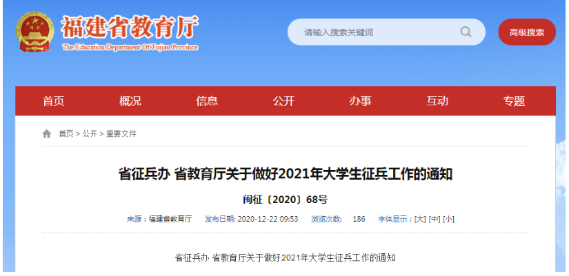 省征兵办、省教育厅近日联合发出《关于做好2021年大学生征兵工作的通知》。