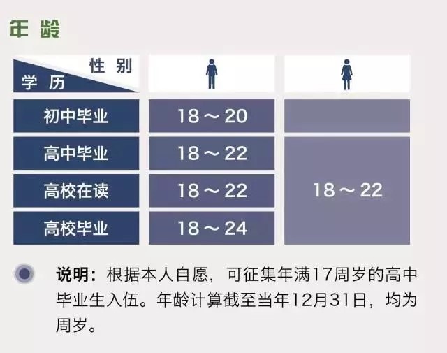 首先明确征集对象范围,征集对象以高中(含职高、中专、技校)毕业以上文化程度的青年为主,优先批准高学历青年和高校应届毕业生入伍!特别提醒:福州、厦门市全部征集高中毕业以上文化程度青年,其他地区减少或取消初中生的征集!