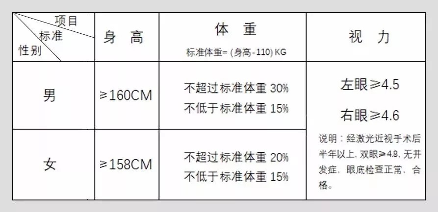 身高如果不够,那就真对不起了!体重如果有偏差,努努力或许还有机会,视力那就重在平时好好爱护眼睛了。