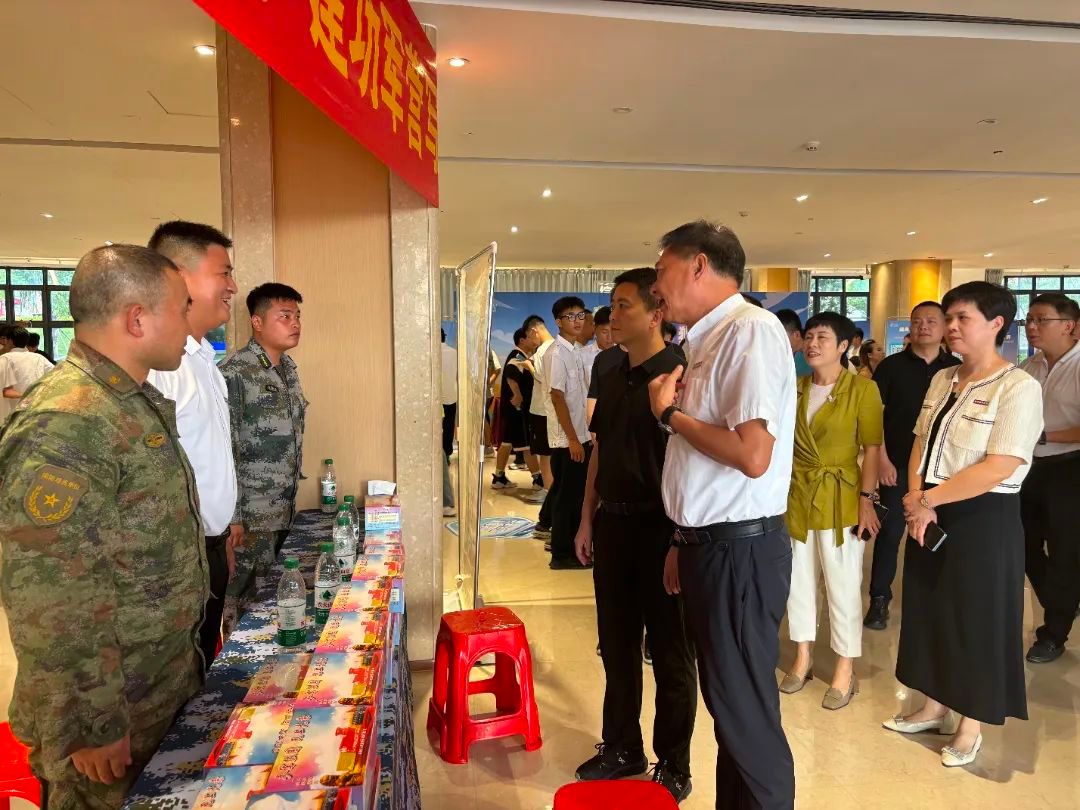 为贯彻习近平强军思想,担当强军重任,响应党和国家的号召,进一步做好2025年大学生应征入伍工作,积极号召广大青年学生参军入伍,激发大学生参军报国热情,6月20日,石狮市人民武装部联合泉州海洋职业学院征兵工作站依托“2025年秋季校园大型双选会”开展征兵宣传进校园活动,石狮市人民武装部政工科科长曹耀华、泉州海洋职业学院武装部部长、国防教育学院书记苏良城、邵院长参加此次宣传咨询活动。