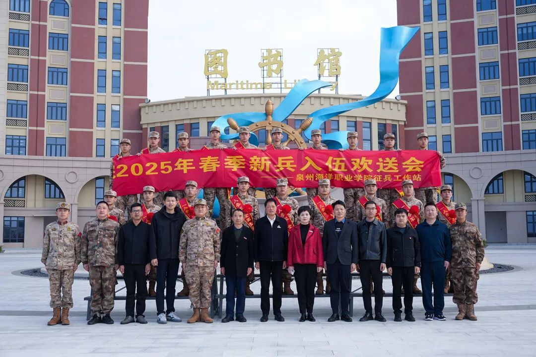 3月17日下午,我校隆重举行2025 年春季应征入伍欢送会,为即将奔赴军营的20名学子壮行。泉州海洋职业学院校长庄伟廉,泉州海洋职业学院党委书记郑艳,泉州海洋职业学院副校长钱学东,国防教育学院邵院长,武装部部长苏良城,海洋工程学院党支部书记周甜,艺术体育学院党总支书记陈绍勇,信息工程学院党总支书记陈合喜,航海交通学院党支部副书记董灿荣,国防教育学院党支部副书记贺充,及国防教育学院师生代表参加欢送会。