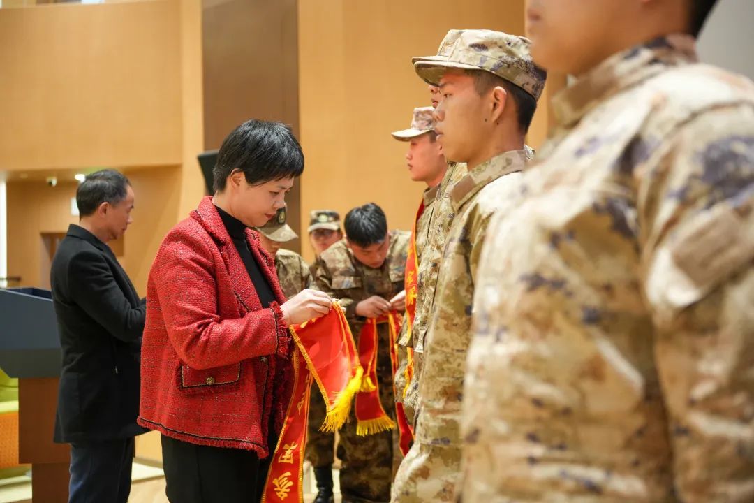 在这庄严而光荣的时刻,我们怀着无比崇敬的心情,共同见证二十位优秀青年投身强军伟业的庄严出征。希望你们在军旅生涯中牢记使命,淬炼自我。当强军战鼓催征的号角响起,期待你们早日成长为军队建设的栋梁之才,在实现中华民族伟大复兴的征程中用青春热血书写无愧于时代的答卷。