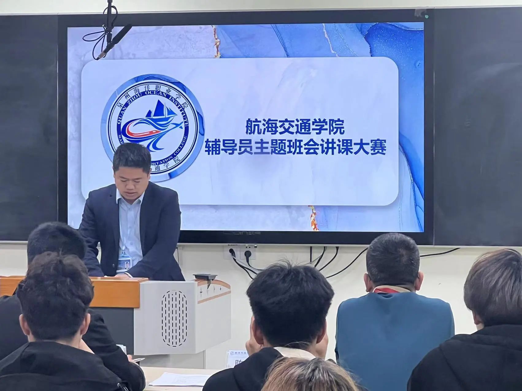 为深入学习贯彻习近平新时代中国特色社会主义思想和全国教育大会、全国高校思想政治工作会议精神,落实《普通高等学校辅导员队伍建设规定》,进一步提升新时代我校辅导员的理论水平、专业素养和宣讲能力。2023年3月20日,航海交通学院在行政楼智慧教室举办了首届辅导员主题班会讲课大赛。校党委委员、副校长、航海交通学院党支部书记陈东水,学生工作发展部部长张君,校团委书记、学生工作发展部副部长屈先锋,航海交通学院院长张文生、游艇帆船学院副院长叶文峰,航海交通学院副书记董灿荣和学工部思政科科长蔡岱宏担任本次比赛评委。航海交通学院与游艇帆船学院全体辅导员和学生代表观摩比赛。