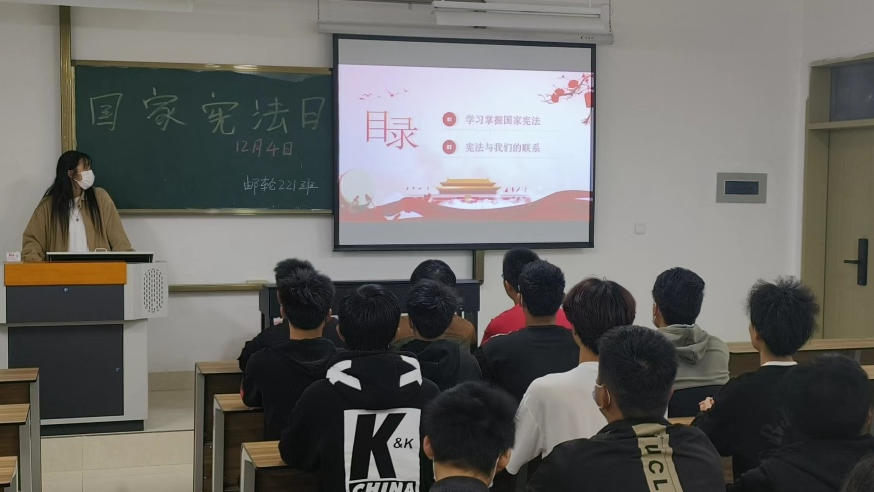 根据中宣部、司法部、全国普法办2022年全国“宪法宣传周”相关工作安排,11月28日至12月4日为全国“法治宣传周”。为进一步认真学习宣传贯彻党的二十大精神,深入学习贯彻习近平法治思想,倡导学生学习宣传宪法,弘扬宪法精神,维护宪法权威,我院于2022年11月30日组织各班级开展“学习宣传贯彻党的二十大精神,自觉维护宪法权威”主题班会。