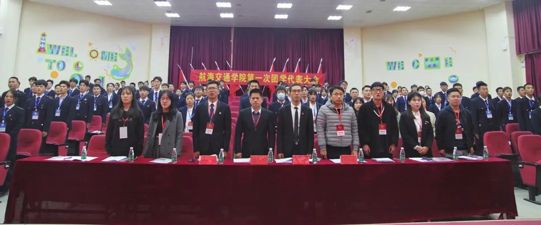 莅临开幕式的领导嘉宾有:校党委委员、航海交通学院院长兼党支部书记陈东水,校团委书记周甜、航海交通学院党支部副书记董灿荣、航海交通学院办公室主任周范超、国防教育学院团委负责人吴东洋、新能源创客学院团委负责人林熠瑶、信息工程学院团委负责人蔡岱宏、航海交通学院教学秘书赵生芸及我院各年级辅导员们。100名团学代表参加此次大会,会议由杨欣如同学主持。
