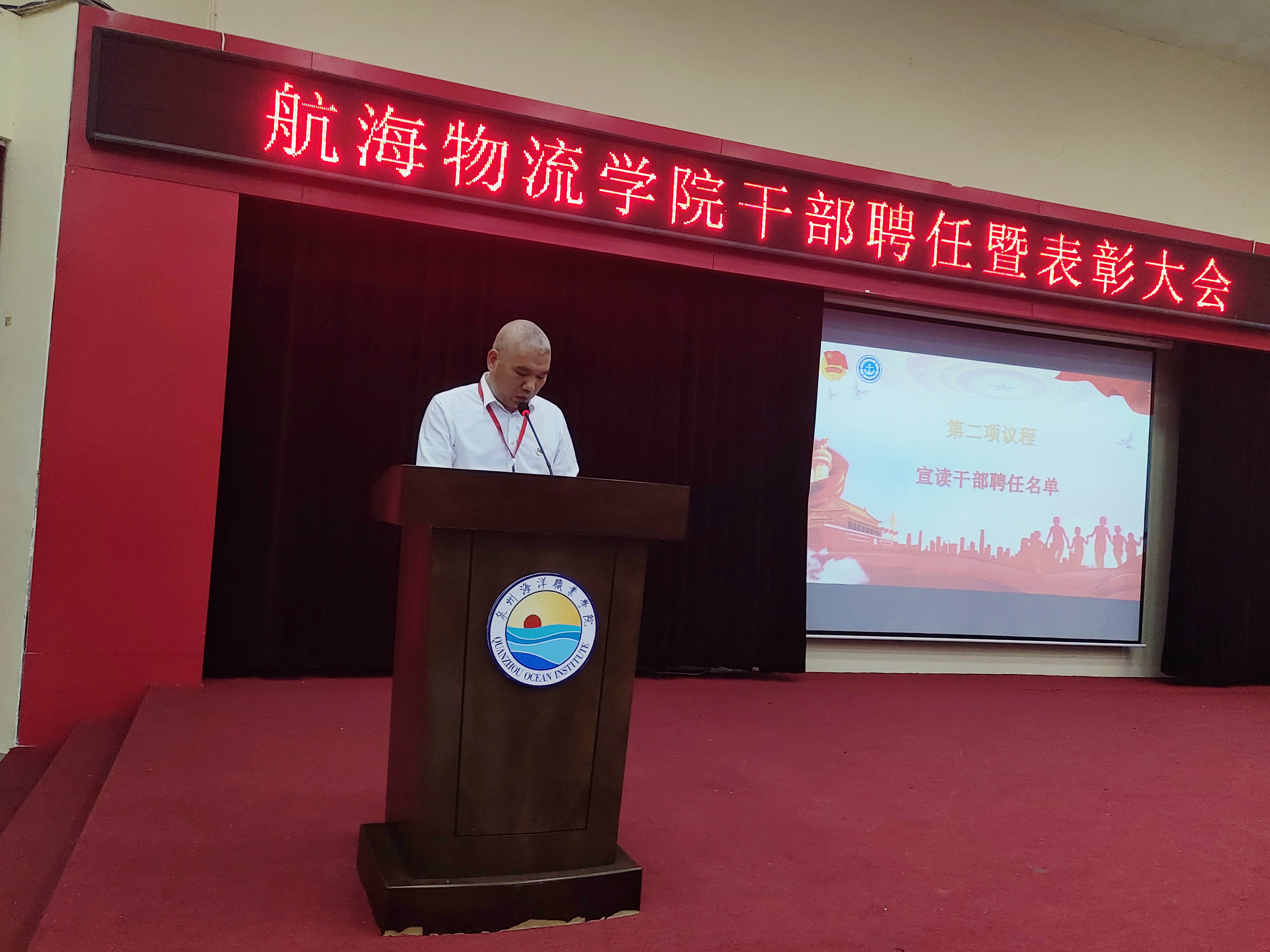 魏榕根书记宣读航海物流学院团委学生会干部聘任名单。