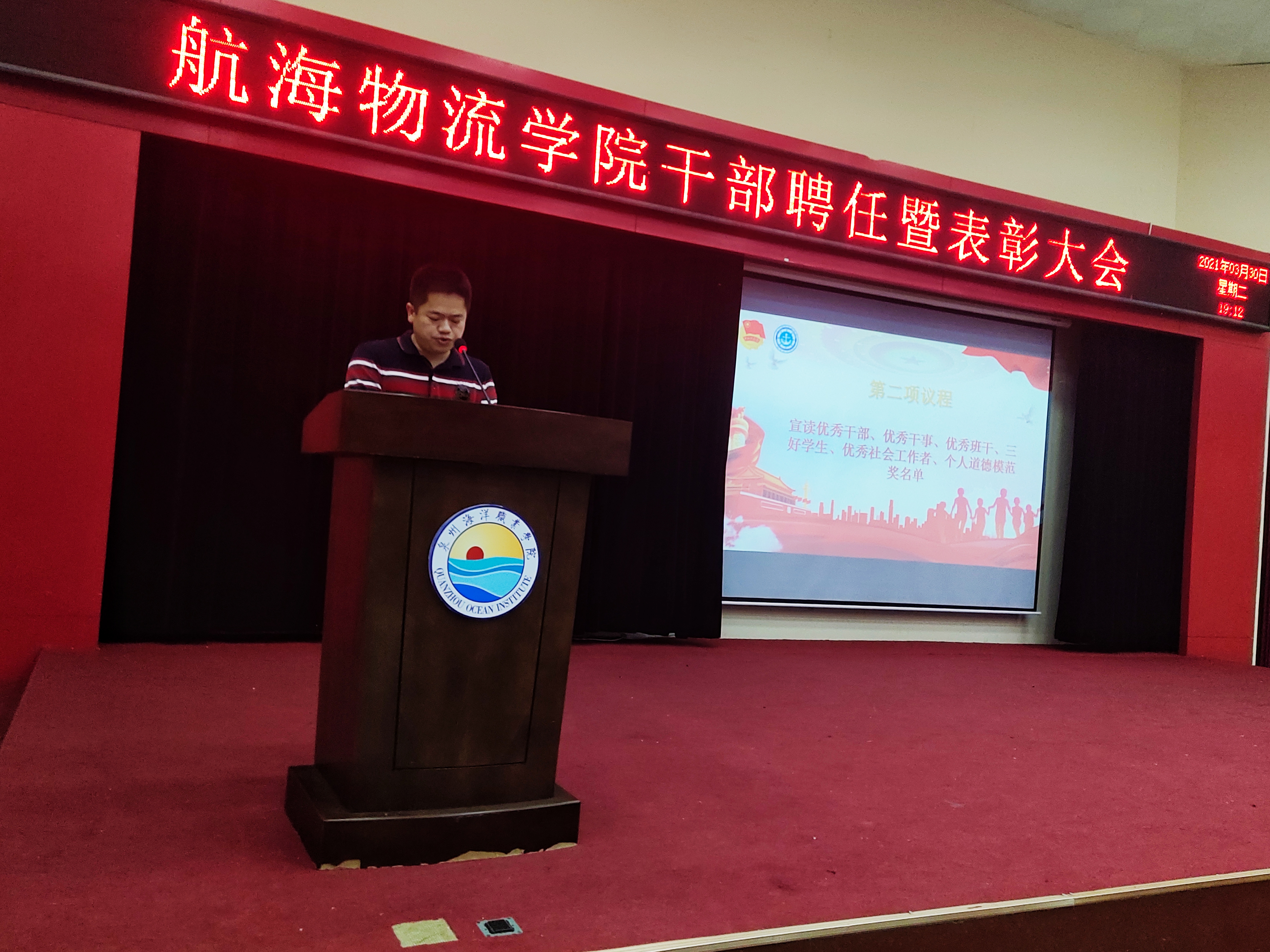 2021年3月30日19:00,我院在2204会议厅召开航海物流学院干部聘任暨表彰大会。旨在表彰先进,传承作风。