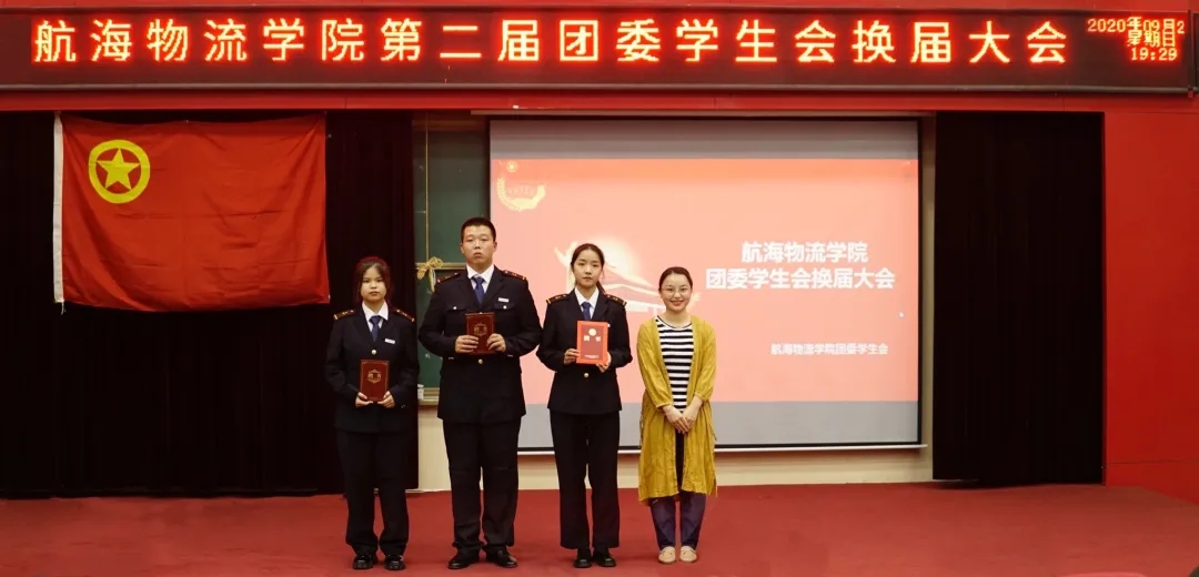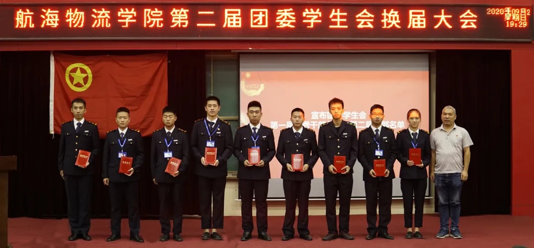 2020年9月27日19点,航海物流学院团委学生会2020-2021学年团委学生会干部换届大会于二号教学楼2204室隆重举行。出席本次大会的老师有:党总支副书记魏榕根,校团委指导老师徐雪婷,各年级辅导员以及19级、20级全体学生参加了本次换届大会。