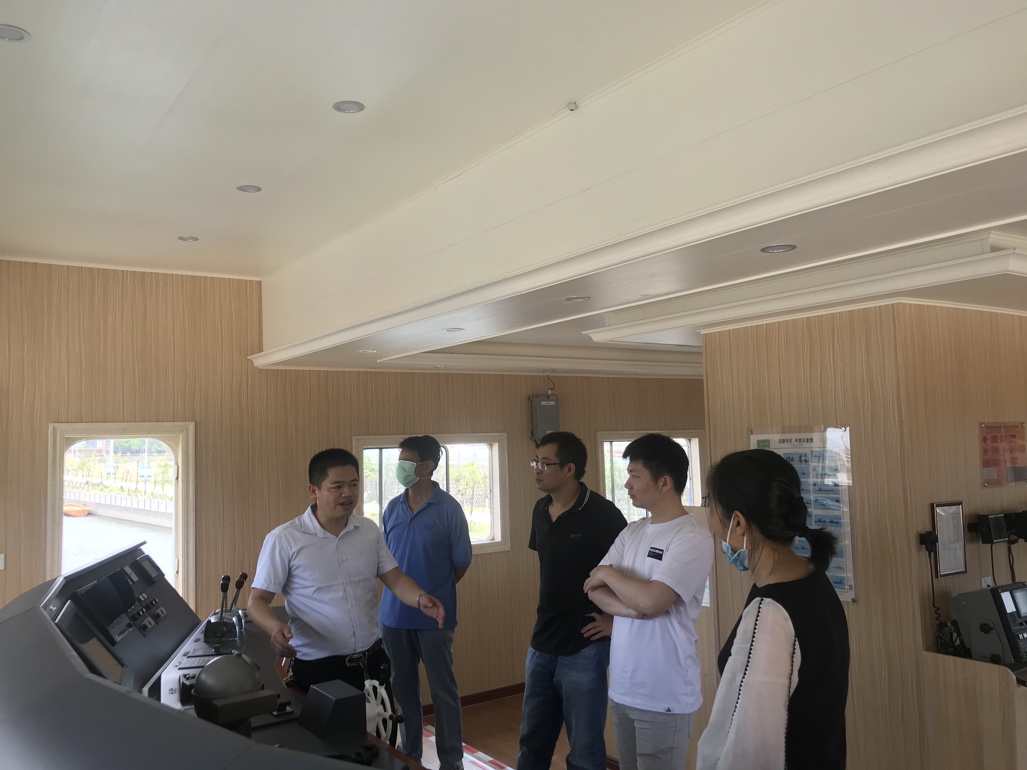 调研过程中,双方就我校航海类专业学生气象知识学习情况、实训基地共建、双聘师资共建、科研课题合作等方面做了深入交流。会后,气象局一行领导参观了我校360°视景全任务船舶操纵模拟器和育航轮实训船。