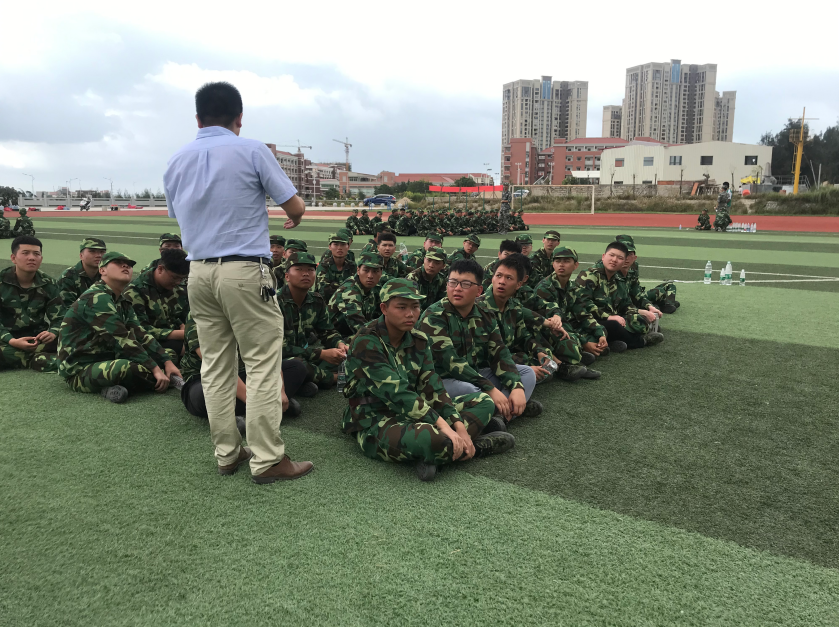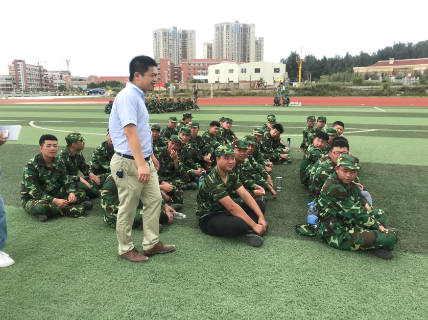 2019年9月4日10:00,航海物流学院院长陈东水及学院老师到新生军训场地(足球场)看望学院2019级新生。