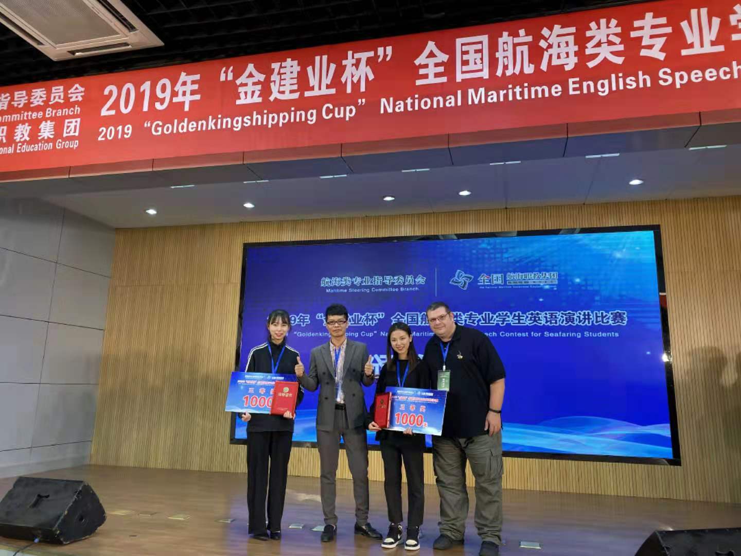 近日,由全国交通运输职业教育教指委航海类专业指导委员会、全国航海职教集团联合主办的首届全国航海类专业学生英语演讲比赛于江苏航运职业技术学院举行。由通识教育学院彭博、郭塬鑫、欧阳昊三位教师共同指导的航海物流学院17级邮轮乘务吴欣、樊玥宏两位学生不畏艰辛,努力拼搏,最终在来自全国23所高职航海院校的优秀选手中脱颖而出,双双荣获三等奖佳绩。
