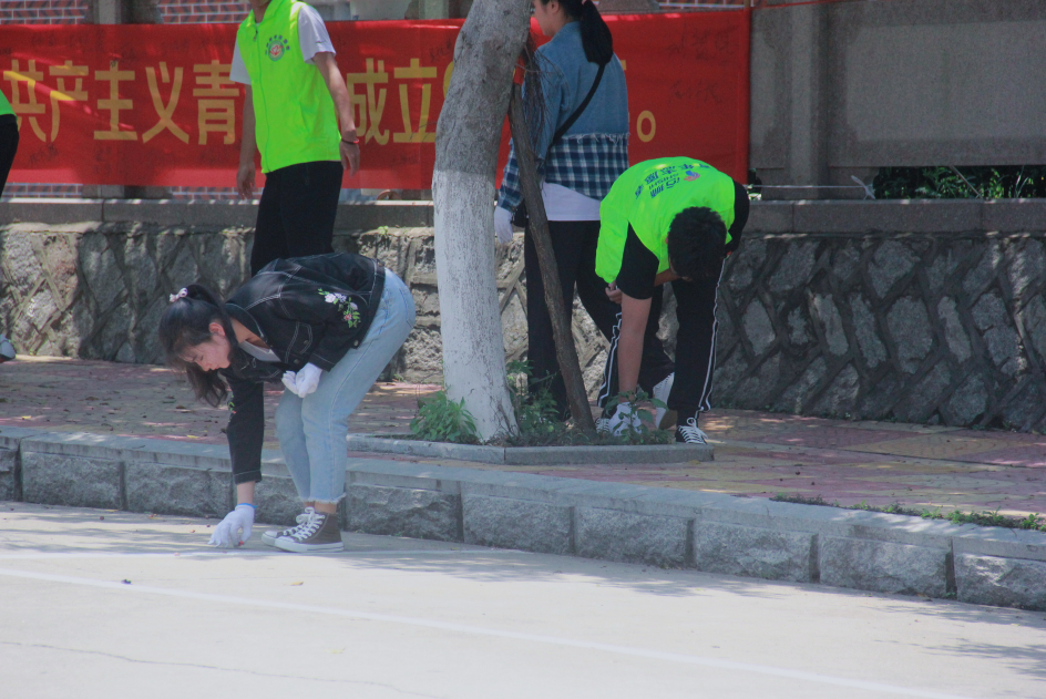 本次活动依然在我们所熟悉的国旗台下集合,不到约定时分,国旗台下就站满了老师同学们,大家纷纷穿上志愿者马甲,一抹荧光绿成为一道靓丽的风景线,热情与活力充斥着此刻的国旗台。也许,这就是优秀的人文环境的魅力。本次打扫的主要地点是我们日常活动的地点,重点是行政楼、食堂以及教学楼附近校道。