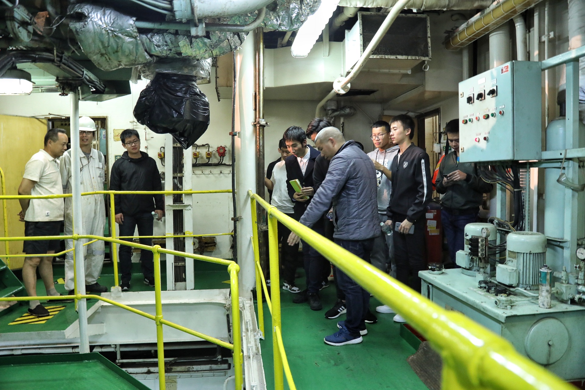 我院学生“YU RONG”轮二副及三管的陪同下参观了船舶的驾驶台、集控室、机舱、甲板及船员生活区。通过此次的参观学习,不仅提高了同学们对专业技术的认知、提高了兴趣,且把课堂转移到实践上,让他们更加扎实的理解并掌握理论知识。同学们实地体验了一名船员在海上真实的工作和生活环境,让同学们对未来有了一些憧憬。