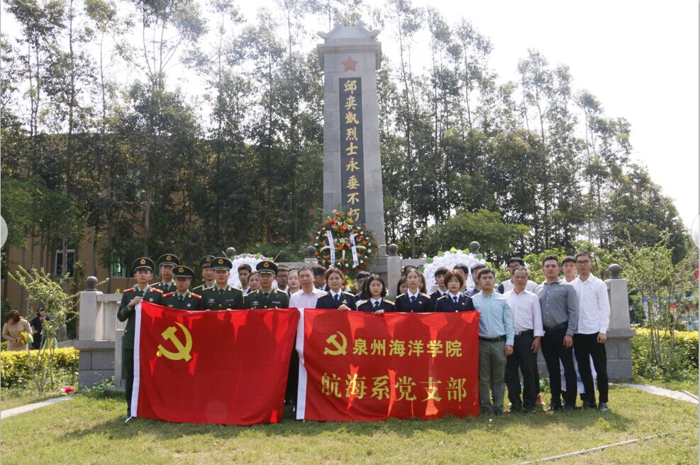 为追寻英雄足迹,继承先烈遗志,弘扬民族精神,增强责任感和使命感,2018年4月4日上午,航海系党支部在学院党委的领导下,与石狮市公安边防大队官兵前往邱奕凯烈士墓,共同举行了,“缅怀革命先烈,弘扬爱国情怀”的扫墓纪念活动。在庄严肃穆的“邱奕凯烈士永垂不朽”纪念碑前,举行了简单而又隆重的悼念仪式。