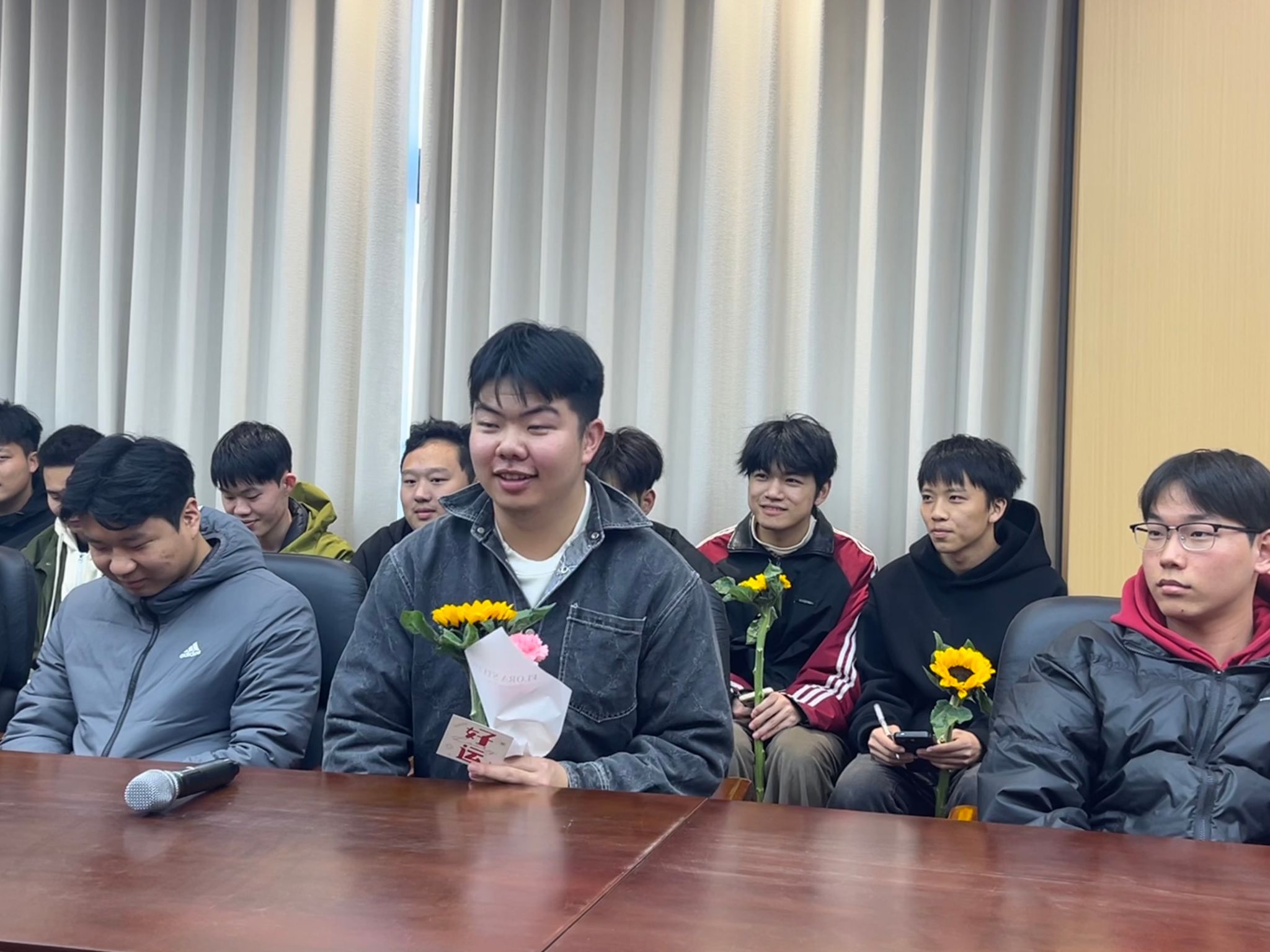 此外,同学们还从教育教学、管理服务、生涯规划、就业指导等方面为学校、学院积极建言献策,会议现场气氛热烈。董灿荣副书记表示,同学们立足学校未来发展,提出了许多具有针对性的宝贵建议,学院将积极吸纳大家的宝贵建议,努力推动学院实现高质量发展,更好地为同学们的成长保驾护航。最后,同学们为卓越班教师代表献花,浓浓师生情,离别话感恩,将整个座谈会推向高潮。