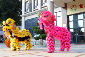锣鼓声起,醒狮跃动。在龙人·伍心家园养老院的广场上,航海交通学院的学子们化身“狮者”,那粉红狮的娇俏灵动与金黄狮的威严飒爽,在阳光下绽放出别样的活力。