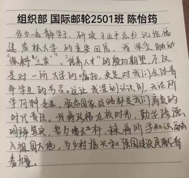 习近平总书记的回信是激励也是指引。作为航海青年学子我们也要以实际行动书写属于我们的时代答卷,为农业强国建设贡献力量。